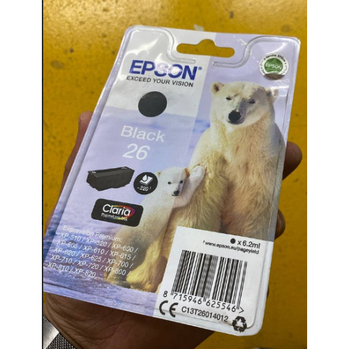 - C13T26014012 уцененный картридж Epson 26 черный для XP-600 / XP-700 / XP-800