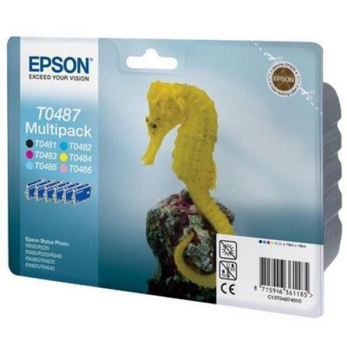 - T0487 / T04874010 = T048140BA = T048140A0 Набор картриджей для Epson Stylus Photo R200/ R220/ R300/ R300ME/ R320/ R340, RX500/ RX600/ RX620/ RX640 (Bk+C+M+Y+LC+LM)T0487