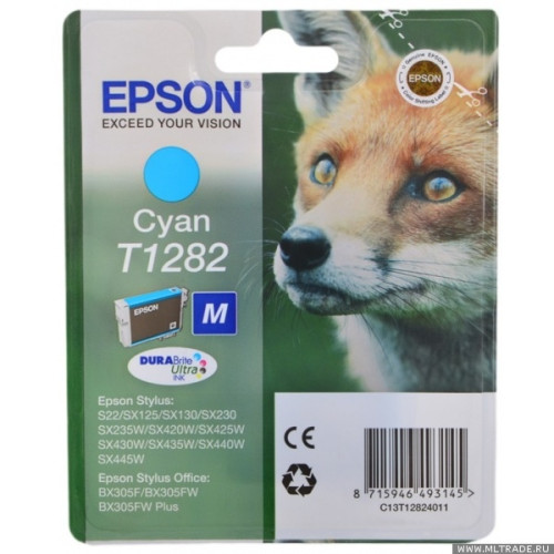 - T1282 уцененный (C13T12824011) Картридж голубой для Epson Stylus S22/ SX125/ 420w/ 425w; Stylus Office