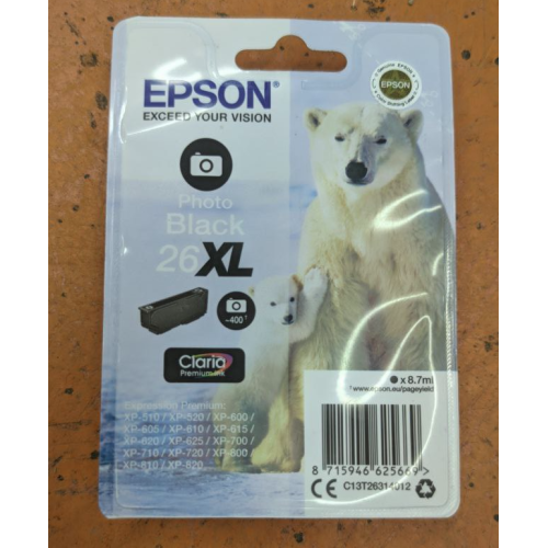 - T2631 уцененный C13T26314010 Картридж Epson черный № 26XL для Epson XP-600/ 605/ 700/ 710/ 800/ 820 (
